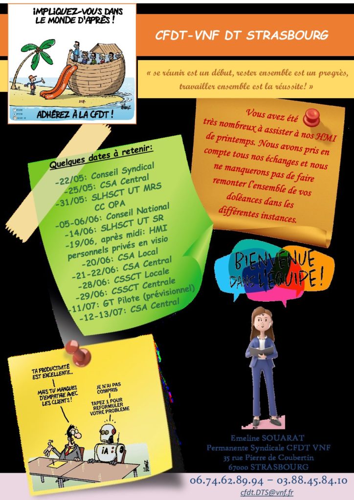 La CFDT-VNF avait demandé la mise en place d’une foire aux questions (FAQ) spécifique afin de permettre aux agents concernés d’être informés et de faire un choix éclairé quant à leur avenir professionnel à VNF. Malheureusement, cette FAQ n’a jamais été mise en place. Les agents ont dû se contenter de l’ouverture d’une boîte mail « téléconduite ». Elle déplore également que les futurs chefs de salle potentiels n’aient eu que tardivement connaissance du planning définitif.