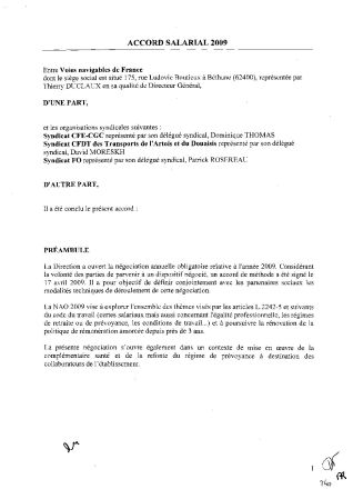 Accord NAO 2009 salariés de droit privé