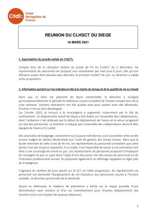 Compte rendu CLHSCT du Siège du 19 mars 2021