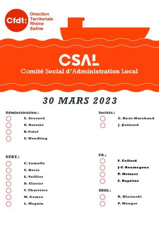 Compte-rendu CSAL 30 mars 2023 Écrit par Cindy Leroy le 5 avril 2023. Publié dans Instances locales, Rhône Saône. « Précédent Suivant »