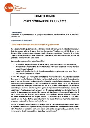 Compte-rendu CSSCT centrale du 29 juin 2023 Écrit par Florence Dequiret le 13 juillet 2023. Publié dans Actualité accueil, Documents accueil. secrétaire programme annuel « Précédent Suivant »