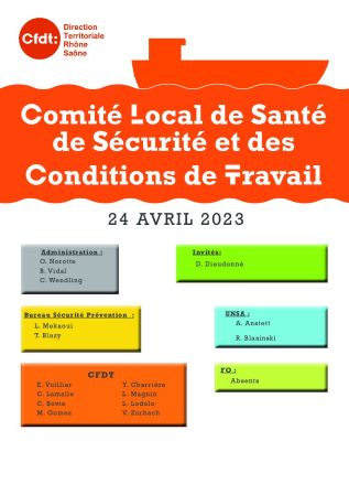Compte-rendu CSSCT locale du 24 avril 2023 Écrit par Cindy Leroy le 11 mai 2023. Publié dans Instances locales, Rhône Saône. « Précédent Suivant »