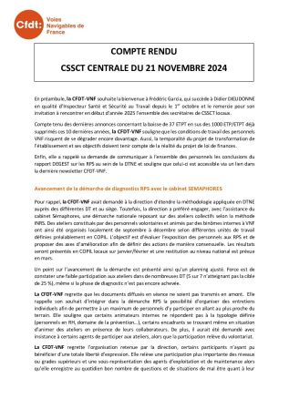 Compte-rendu de la CSSCT centrale du 21 novembre 2024 Écrit par Cindy Leroy le 13 janvier 2025. Publié dans Actualité accueil, Documents accueil. « Précédent Suivant »