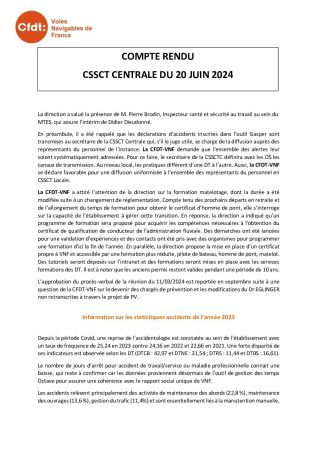 Compte rendu de la réunion CSSCT Centrale du 20 juin 2024 Écrit par Florence Dequiret le 16 juillet 2024. Publié dans Documents accueil. « Précédent Suivant »