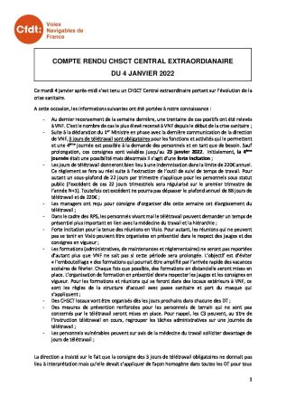 Compte rendu du CHSCT central extraordinaire du 4 janvier 2022 Écrit par webm@ster le 24 février 2022. Publié dans Non classé. Compte rendu du CHSCT central extraordinaire du 4 janvier 2022 crise sanitaire et télétravail « Précédent Suivant »