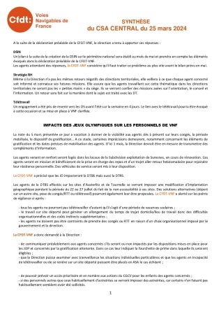 Compte-rendu du CSA central du 25 mars 2024 Écrit par Cindy Leroy le 16 mai 2024. Publié dans Actualité accueil, Documents accueil. DSIN Stratégie RH Télétravail impacts des JO nouveau système d’information financier instruction dispositif national de signalement des agissements répréhensibles (DSAR) intranet « Précédent Suivant »