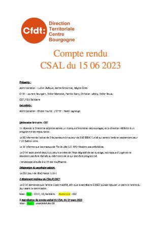 Compte rendu CSA Local du 15 juin 2023 Écrit par Florence Dequiret le 24 juillet 2023. Publié dans Centre Bourgogne, Instances locales. « Précédent Suivant »