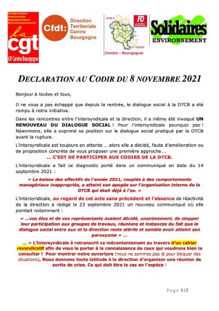 Déclaration CODIR 8 novembre 2021 Écrit par webm@ster le 21 juin 2022. Publié dans Non classé. « Précédent Suivant »