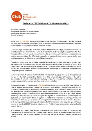 Déclaration préalable au Conseil d’Administration du 29 novembre 2023 Écrit par Cindy Leroy le 30 novembre 2023. Publié dans Actualité accueil, Documents accueil. « Précédent Suivant »