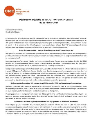 Déclaration préalable au CSA central du 15 février 2024 Écrit par Cindy Leroy le 15 février 2024. Publié dans Actualité accueil, Documents accueil. « Précédent Suivant »