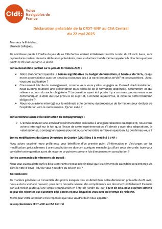 Déclaration préalable au CSA central du 22 mai 2025 Écrit par Cindy Leroy le 23 mai 2025. Publié dans Actualité accueil, Documents accueil. « Précédent Suivant »