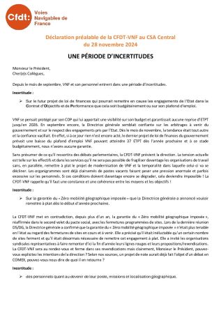 Déclaration préalable au CSA central du 28 novembre 2024 Écrit par Cindy Leroy le 28 novembre 2024. Publié dans Actualité accueil, Documents accueil. COP Zéro mobilité géographique imposée cartographie maintenance remboursement des frais de déplacement NOTILUS TSDD complémentaire santé et prévoyance « Précédent Suivant »