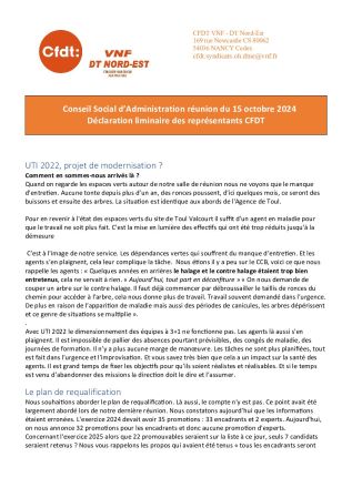 Déclaration préalable au CSAL du 15 octobre 2024 Écrit par Cindy Leroy le 21 octobre 2024. Publié dans Instances locales, Nord-Est. « Précédent Suivant »