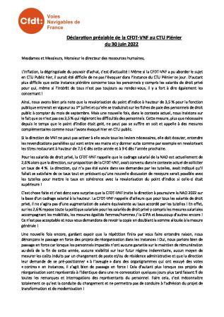 Déclaration préalable CFDT VNF au CTU plénier du 30 juin 2022