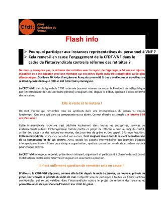 Flash info : instances VNF / La réforme des retraites / Préavis de grève mai 2023 Écrit par webm@ster le 25 avril 2023. Publié dans Actualité accueil. Document Flash Info sur les instances VNF La réforme des retraites préavis de grève mai 2023Télécharger « Précédent Suivant »
