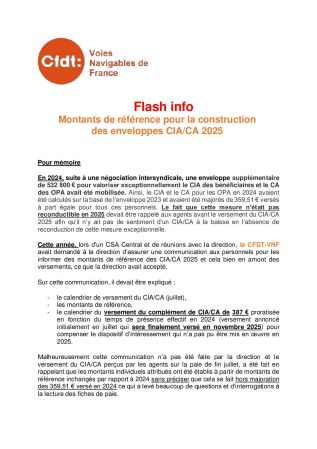 Flash info – Montants de référence pour la construction des enveloppes CIA/CA 2025