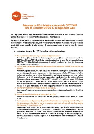 Réponse à la lettre ouverte CFDT-VNF – Réunion DS/DG du 13 septembre 2022 Écrit par Florence Dequiret le 16 septembre 2022. Publié dans Actualité accueil, Documents accueil. « Précédent Suivant »