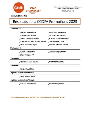 Résultats CCOPA promotions mai 2023 Écrit par Florence Dequiret le 2 juin 2023. Publié dans Nord-Est. « Précédent Suivant »