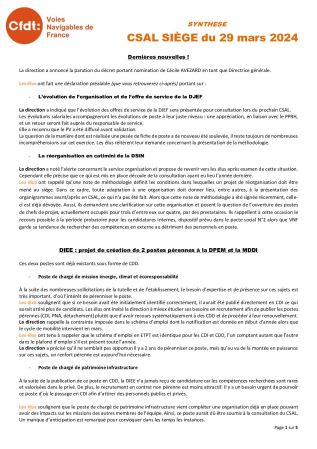 Synthèse de la CSAL du 29 mars 2024 Écrit par Cindy Leroy le 16 mai 2024. Publié dans Instances locales, Siège. « Précédent Suivant »