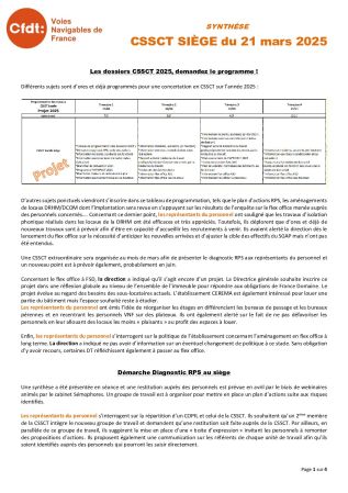 Synthèse de la CSSCT du 21 mars 2025 Écrit par Cindy Leroy le 17 avril 2025. Publié dans Instances locales, Siège. « Précédent Suivant »