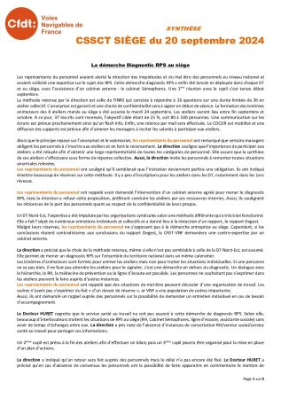 Synthèse de la CSSCTL du 20 septembre 2024 Écrit par Cindy Leroy le 18 novembre 2024. Publié dans Instances locales, Siège. « Précédent Suivant »