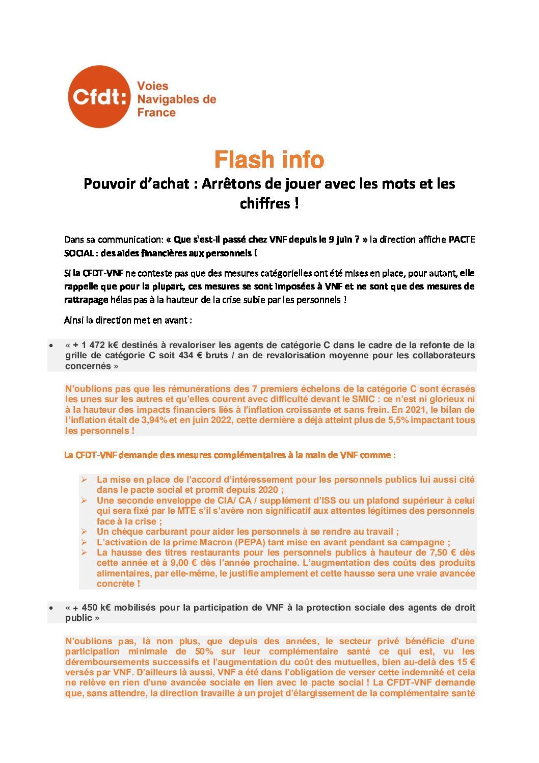 Flash info suite à la Com Que s’est il passé chez VNF depuis le 9 juin Pouvoir d’achat pacte social