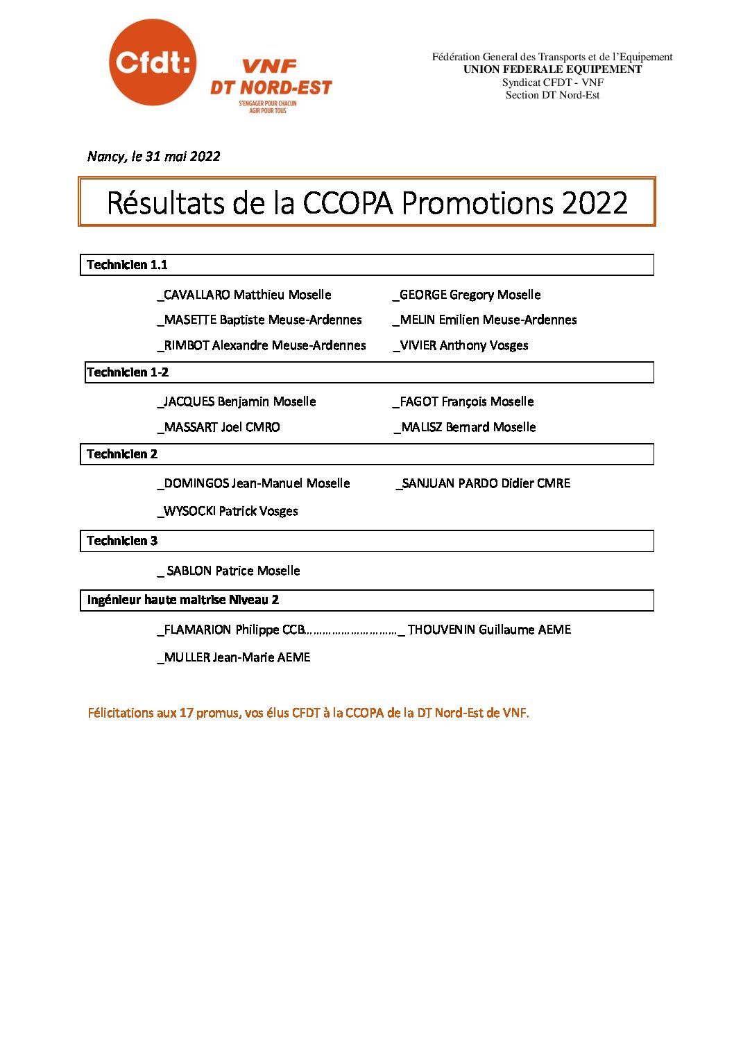 Résultats de la CCOPA Promotions 2022 – DT NE