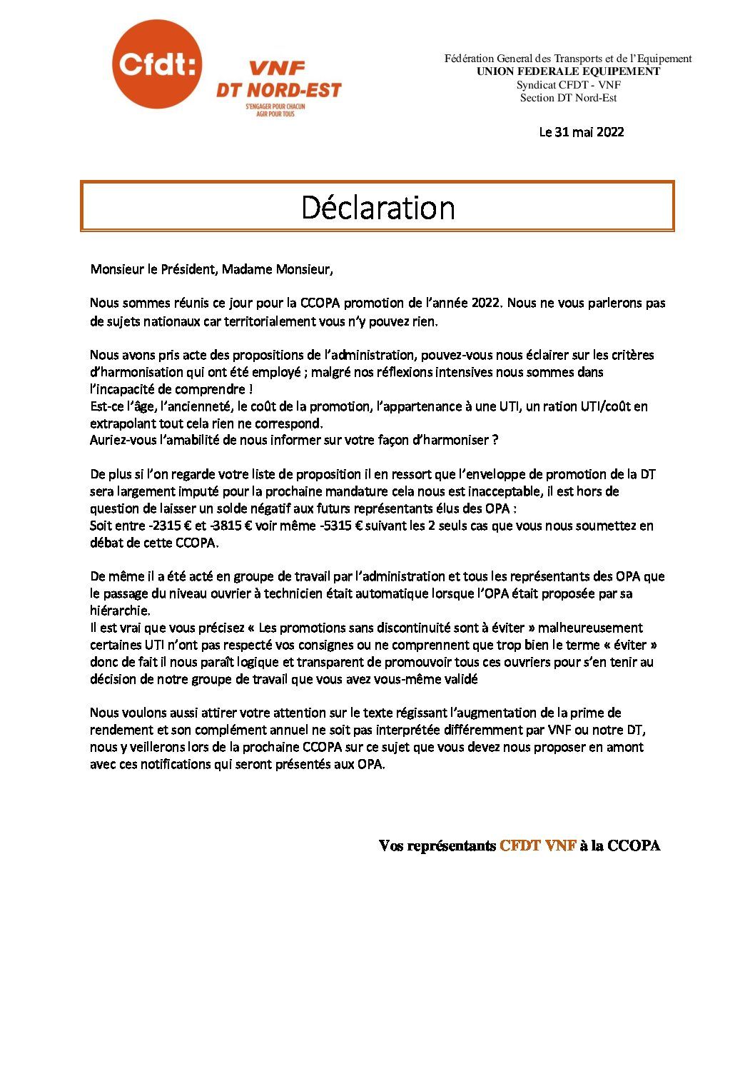 déclaration CCOPA 15 février 2022 DT Nord-Est