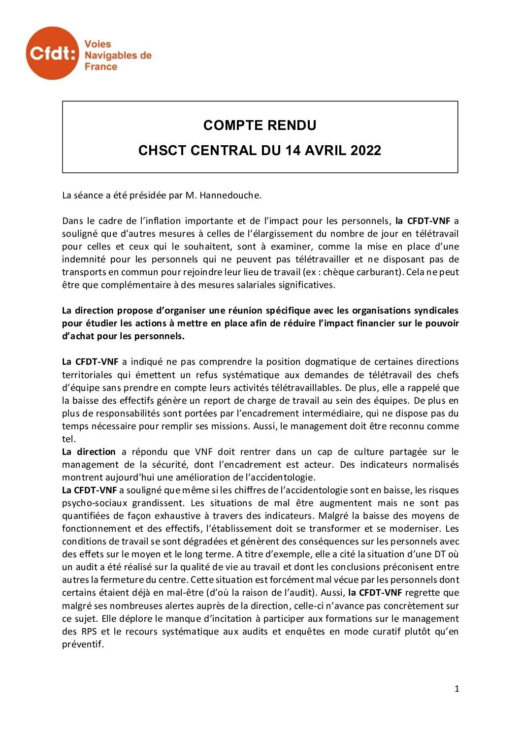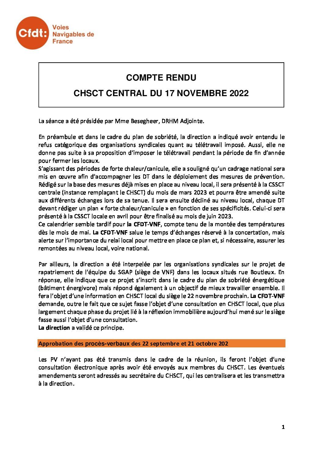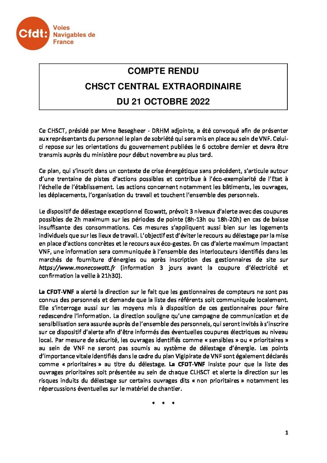 Compte rendu du CHSCT Central extraordinaire du 21 octobre 2022
