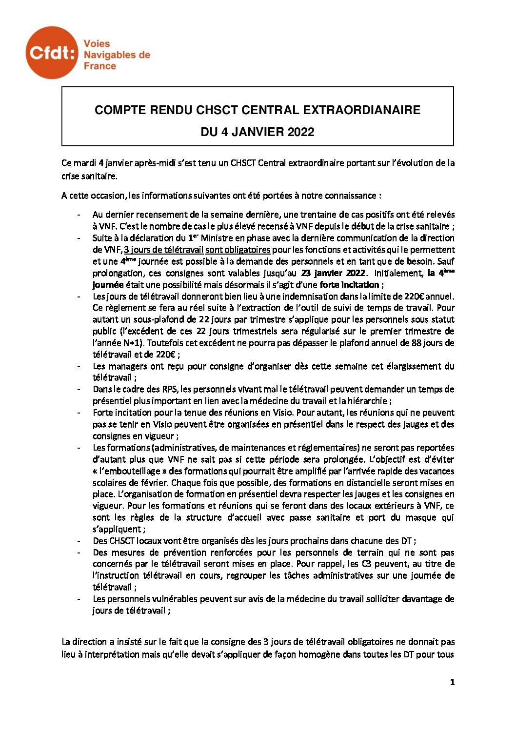 Compte rendu du CHSCT central extraordinaire du 4 janvier 2022