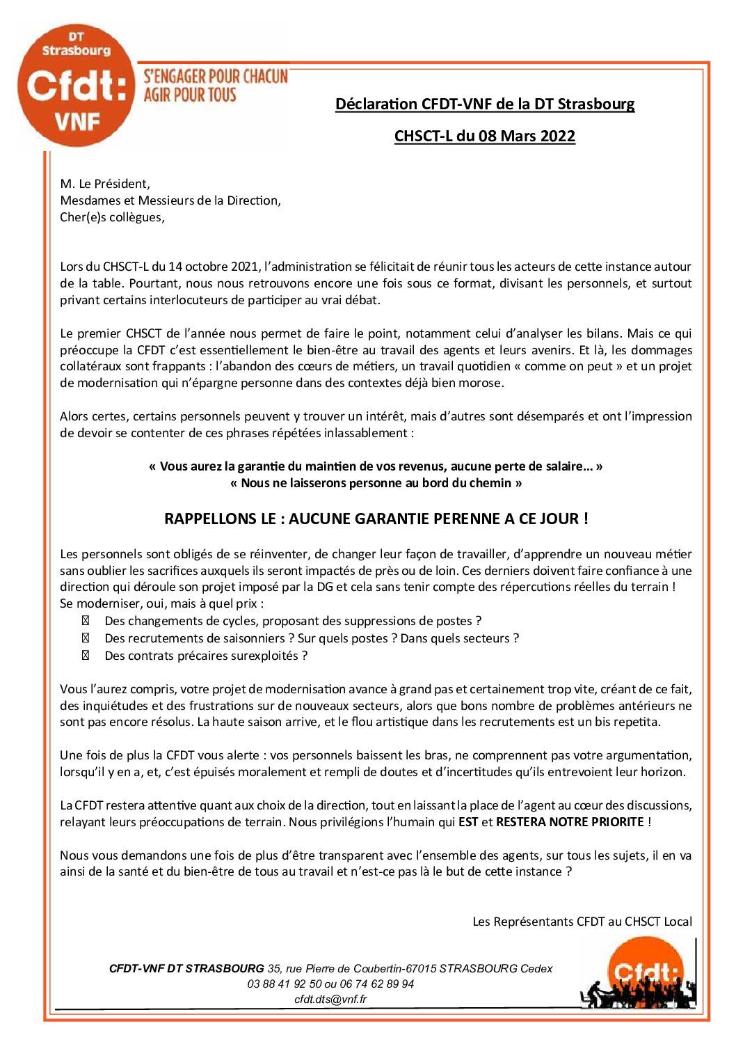 Déclaration CLHSCT du 8 mars 2022
