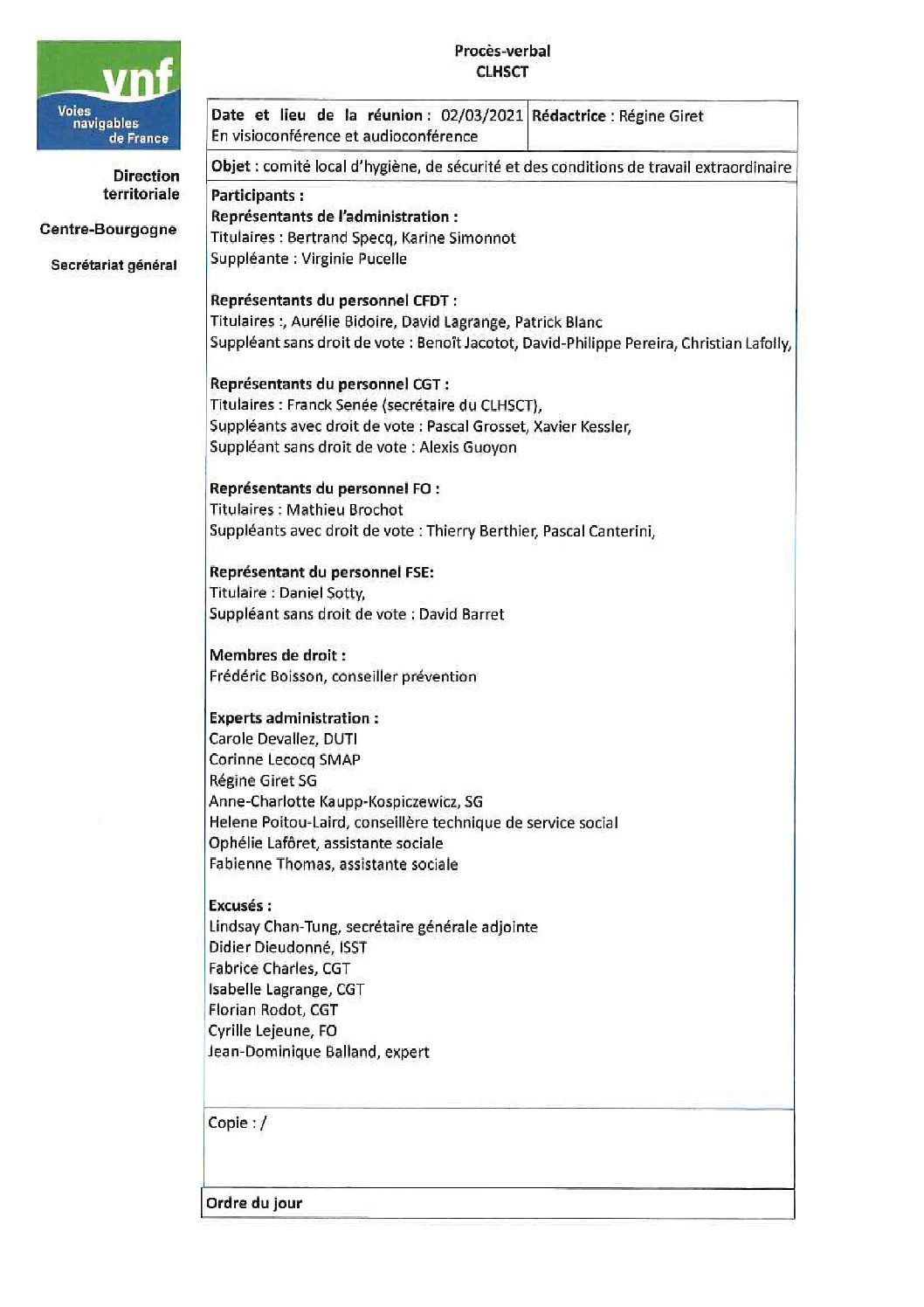 Compte-rendu du CLHSCT 02 mars 2021 de la DT Centre Bourgogne