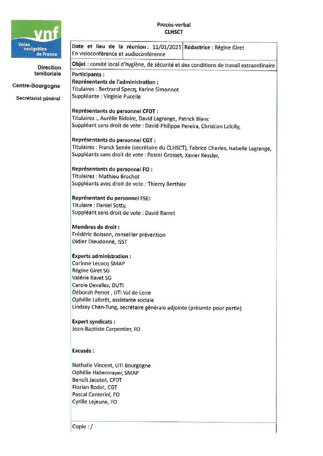 Compte-rendu du CLHSCT du 11 janvier 2021 de la DT Centre Bourgogne