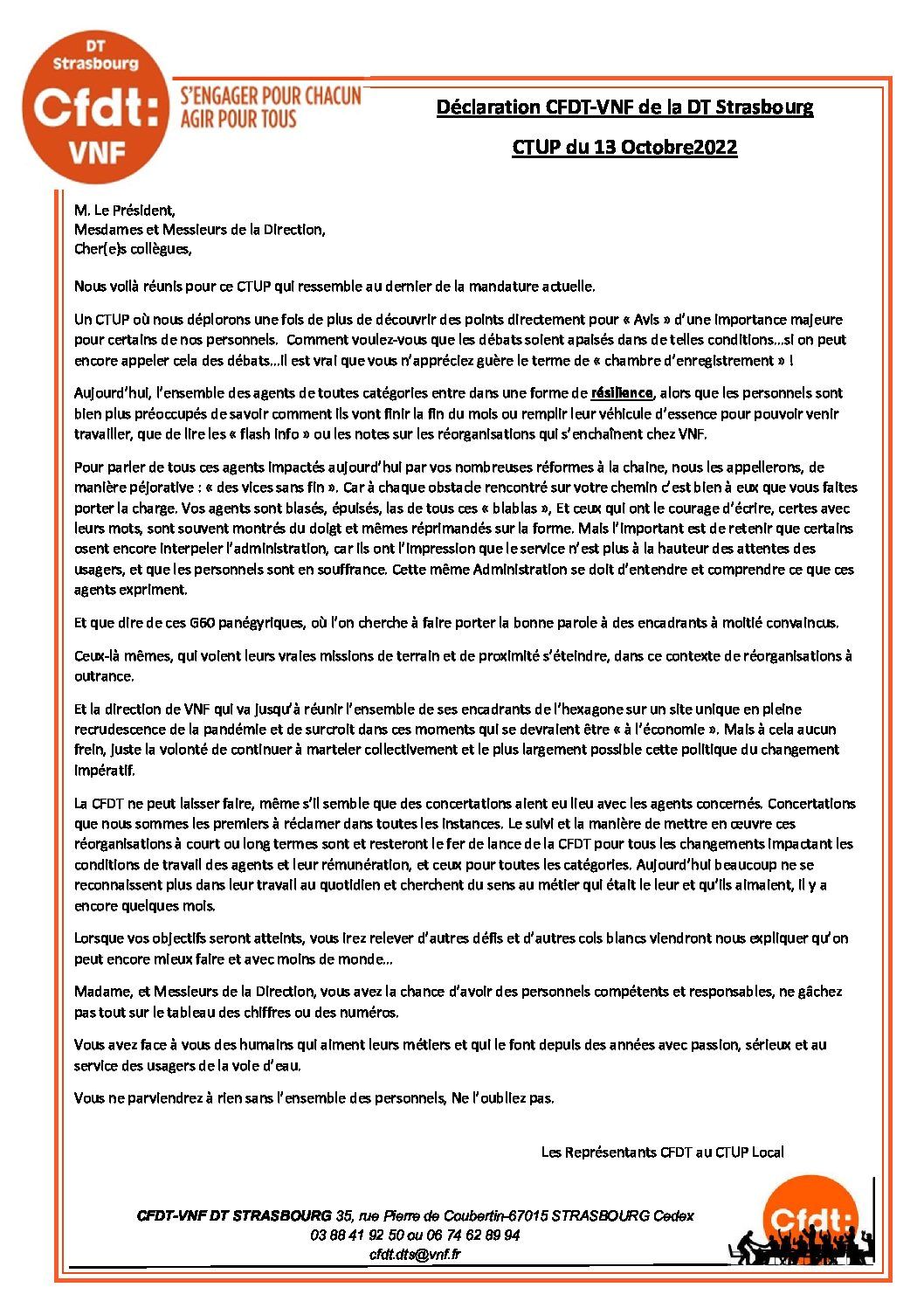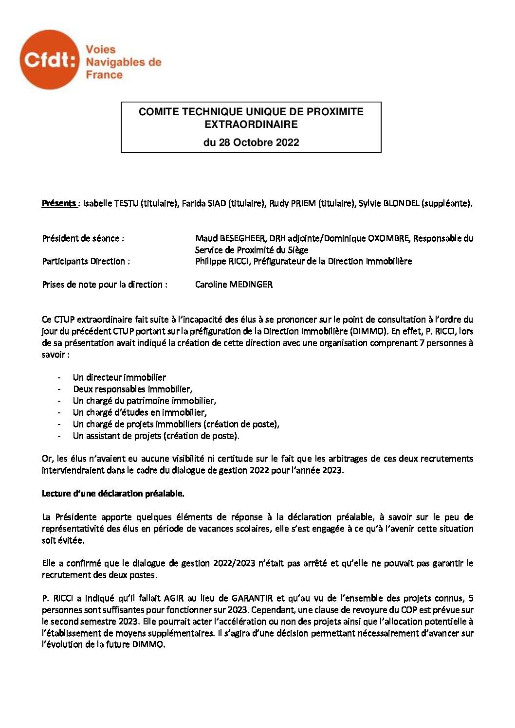 Synthèse CTUP extraordinaire du 28 octobre 2022