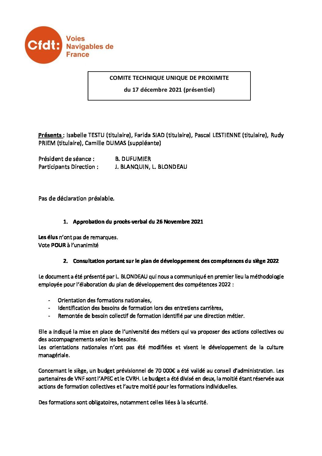 Synthèse CTU Proximité du Siège du 17 décembre 2021