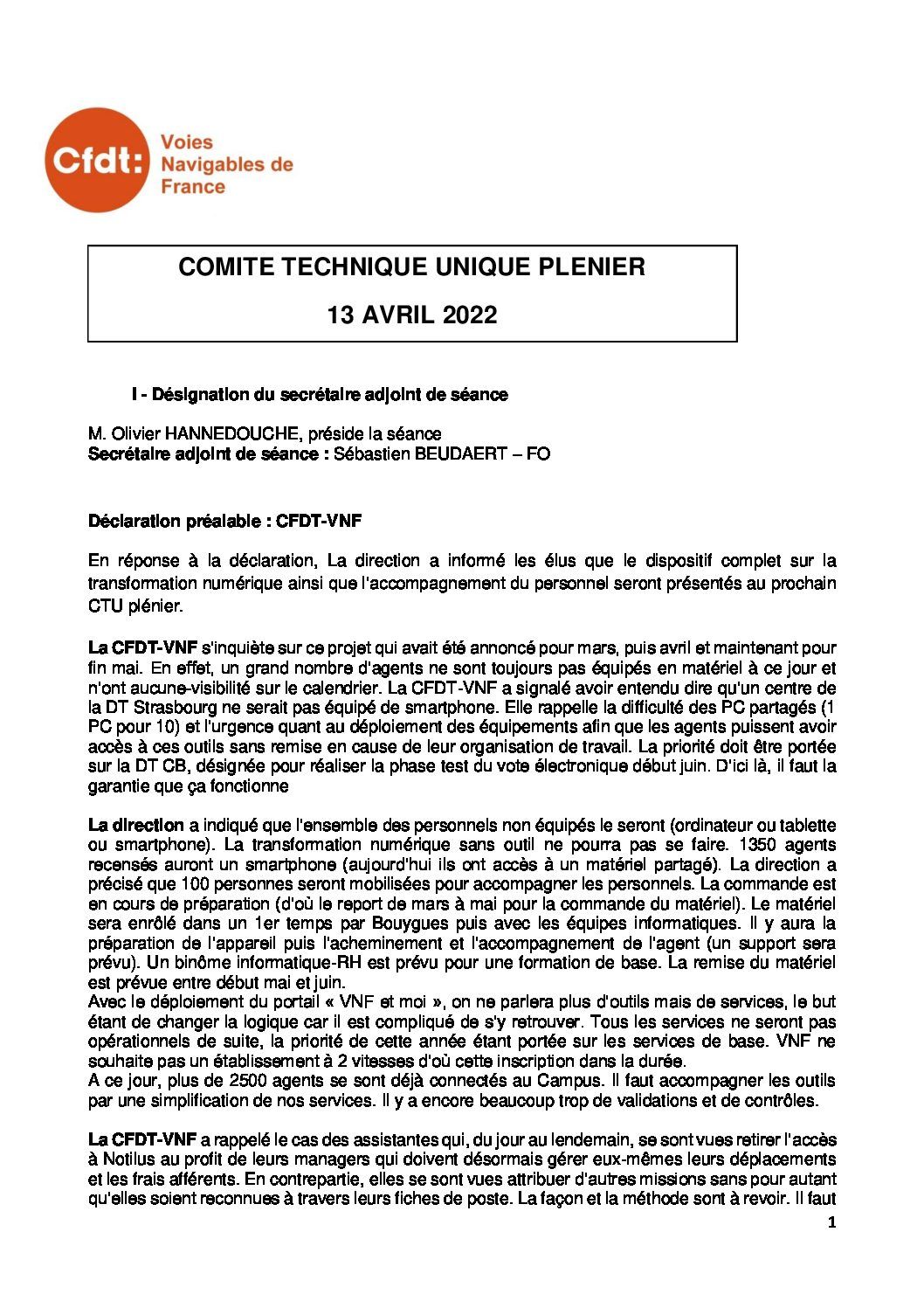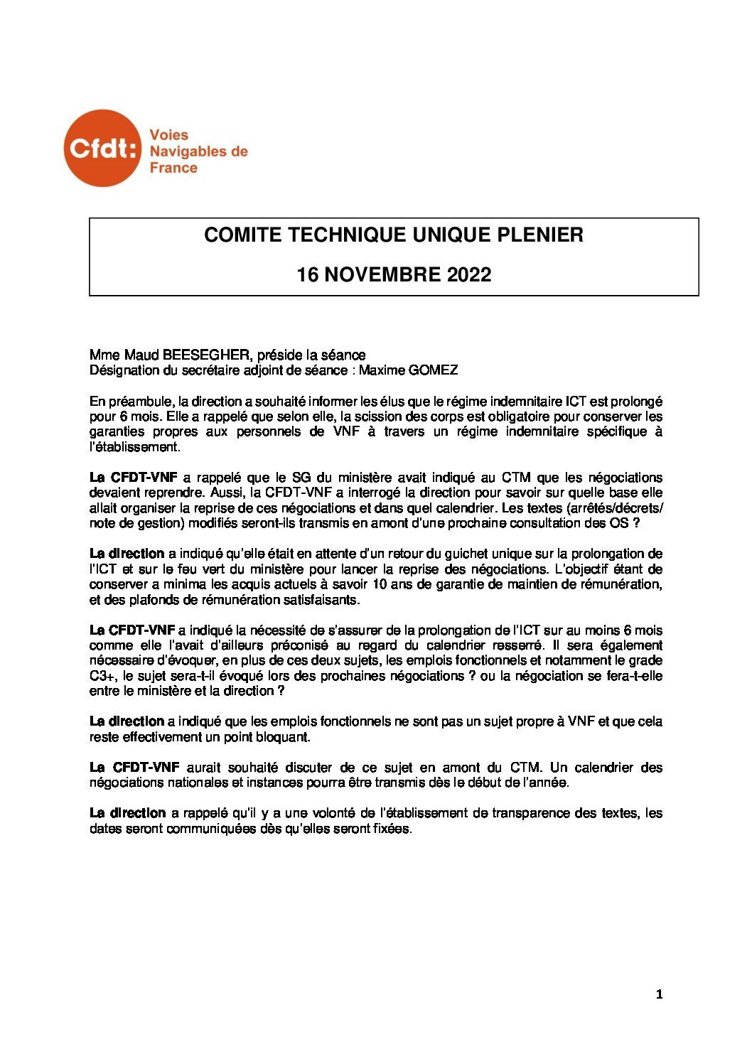Compte rendu du CTU Plénier du 16 novembre 2022