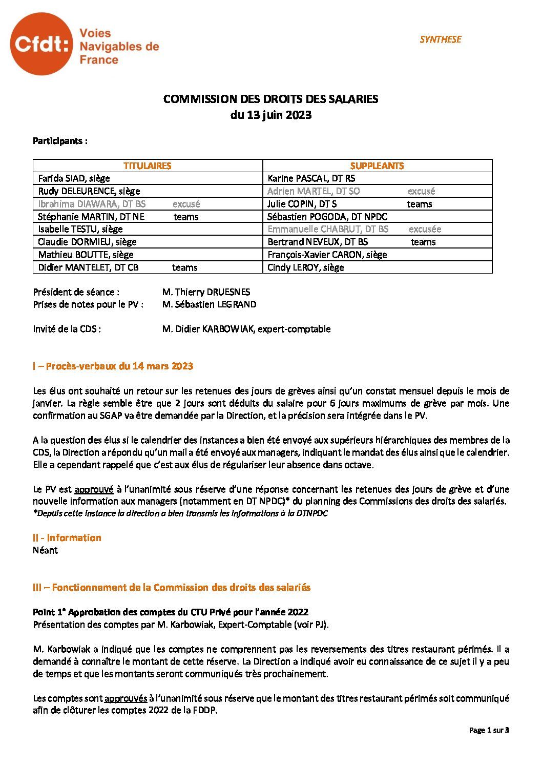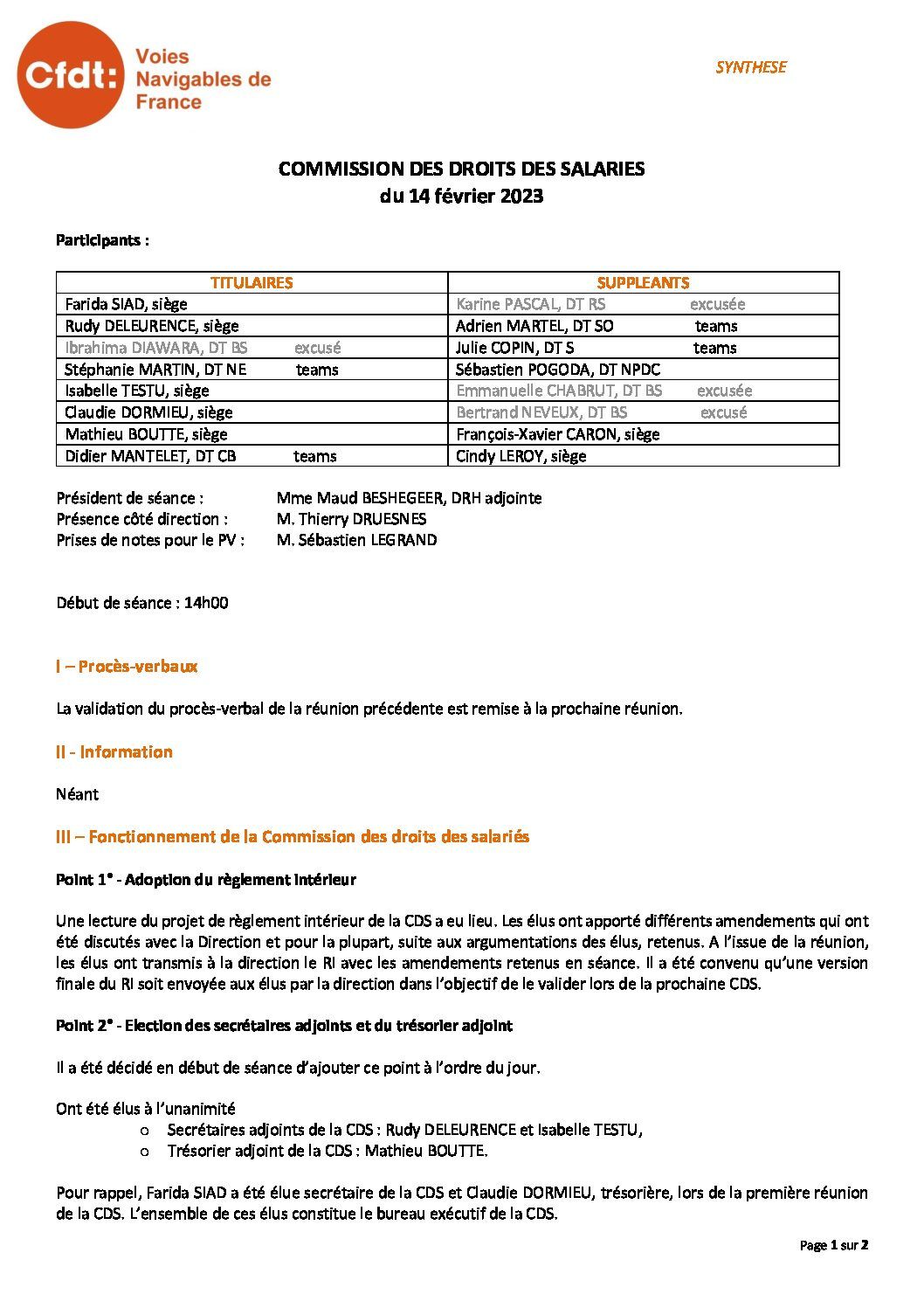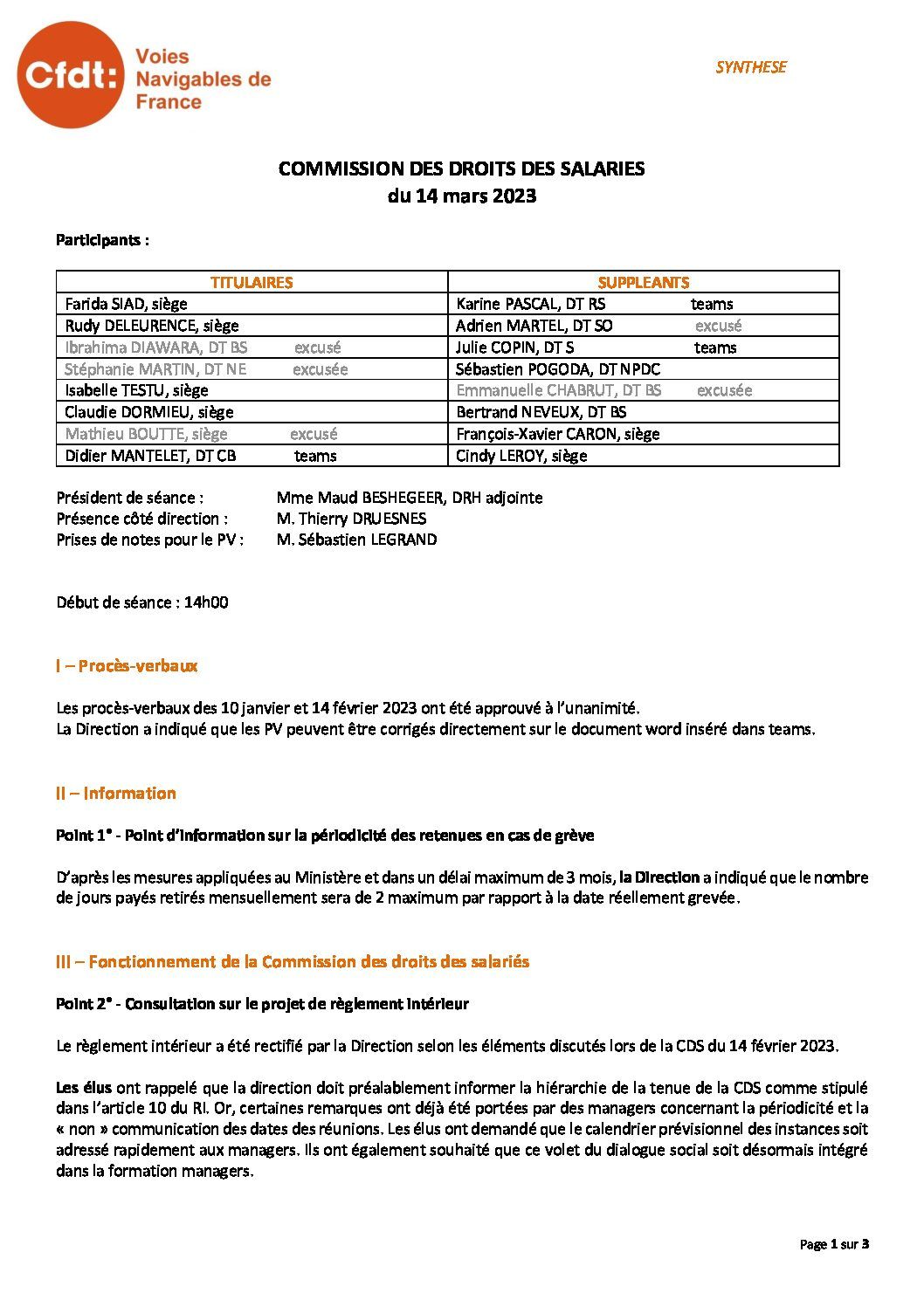 Réponse réclamations individuelles et collectives – CDS 14 mars 2023