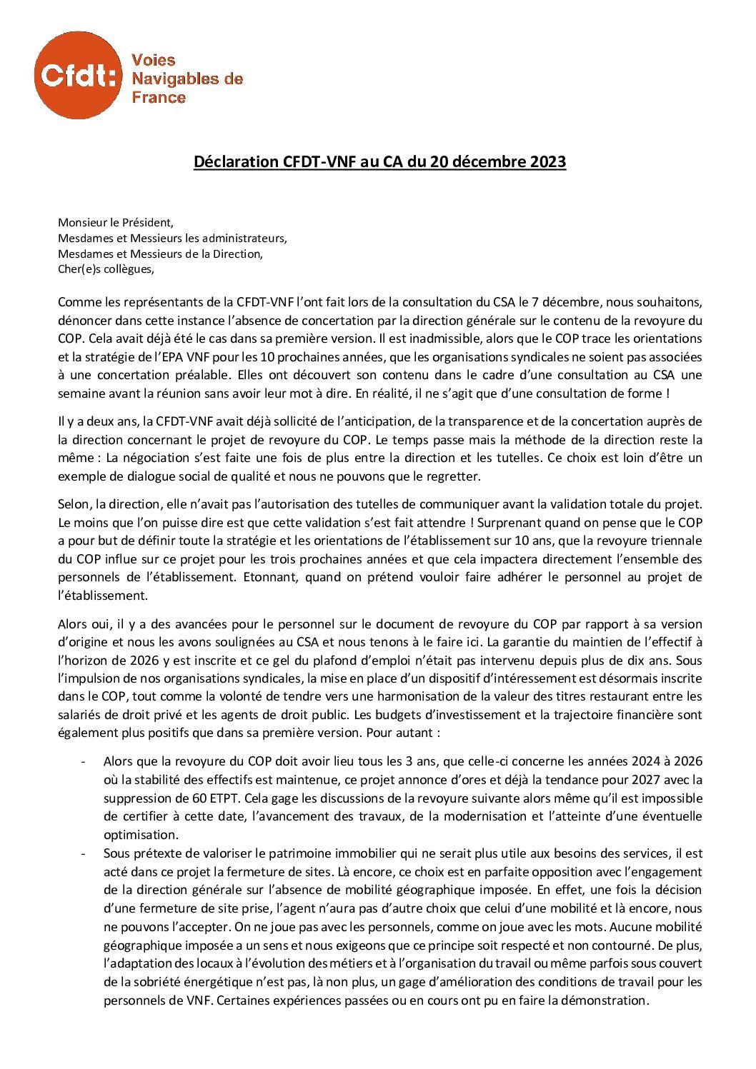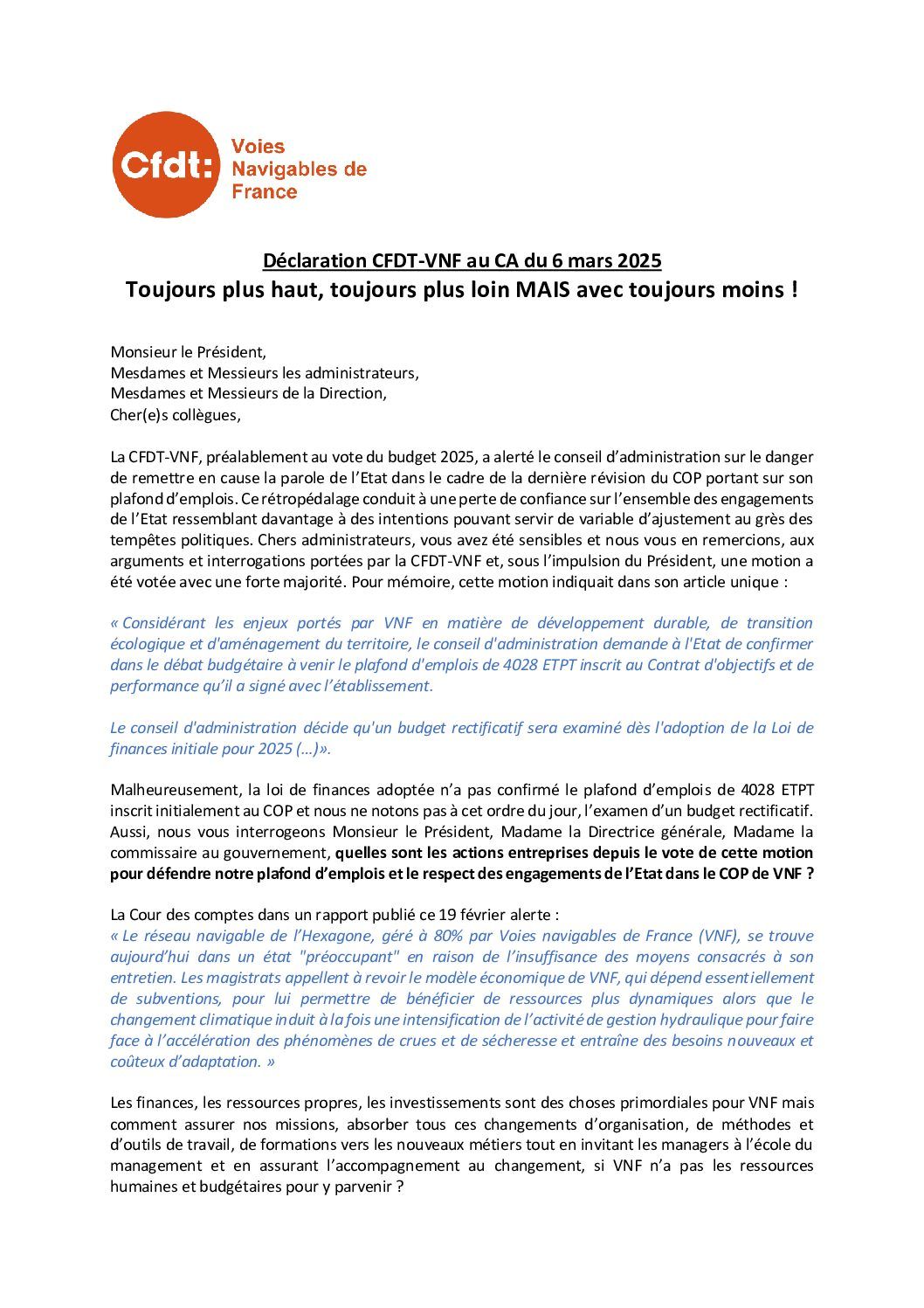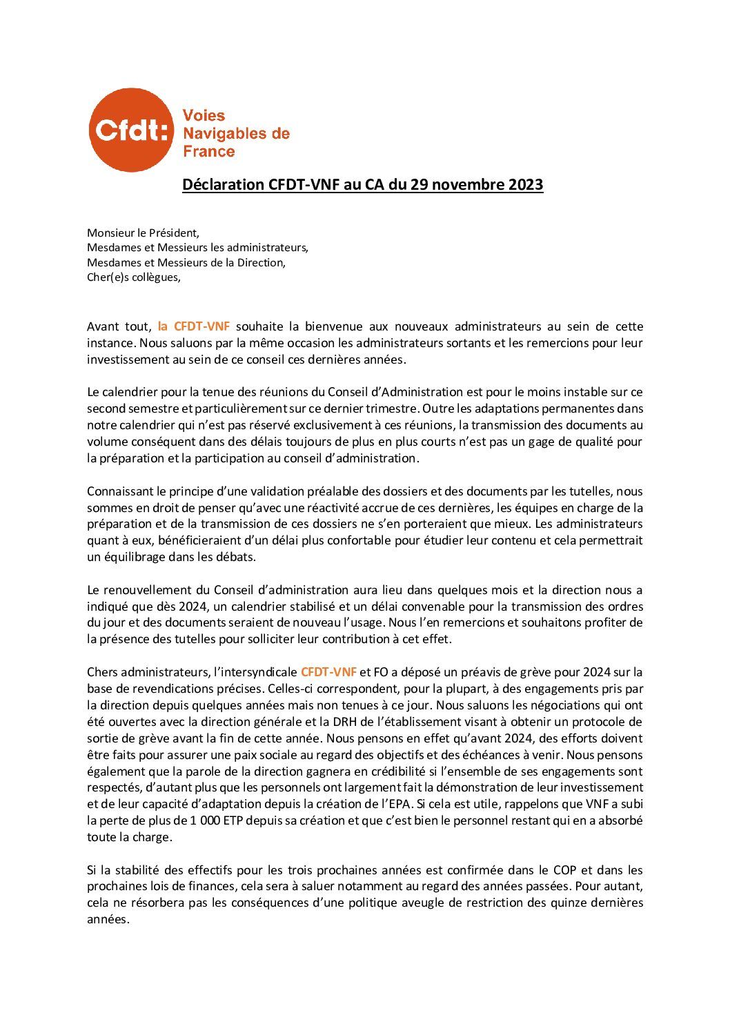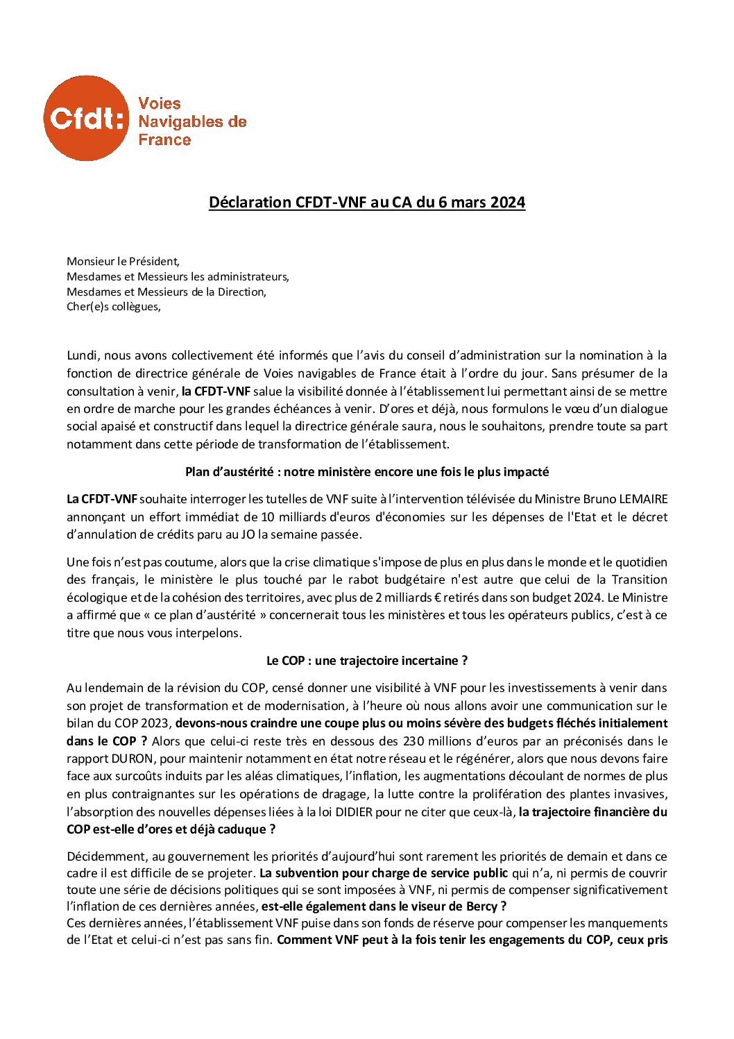 Déclaration préalable au Conseil d’administration du 15 octobre 2025
