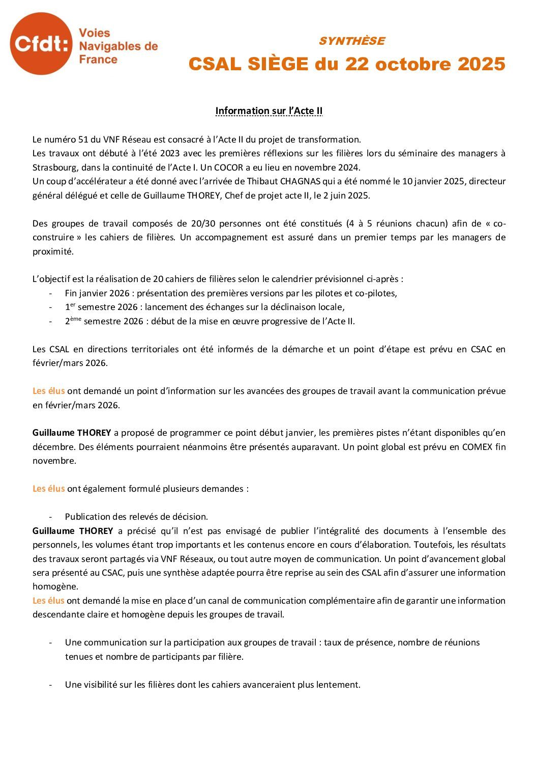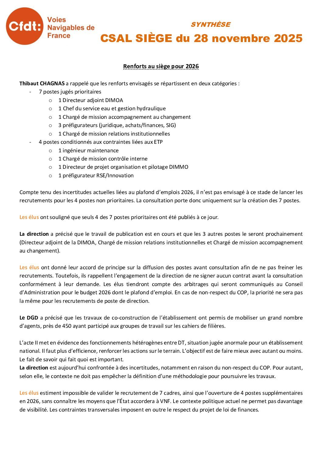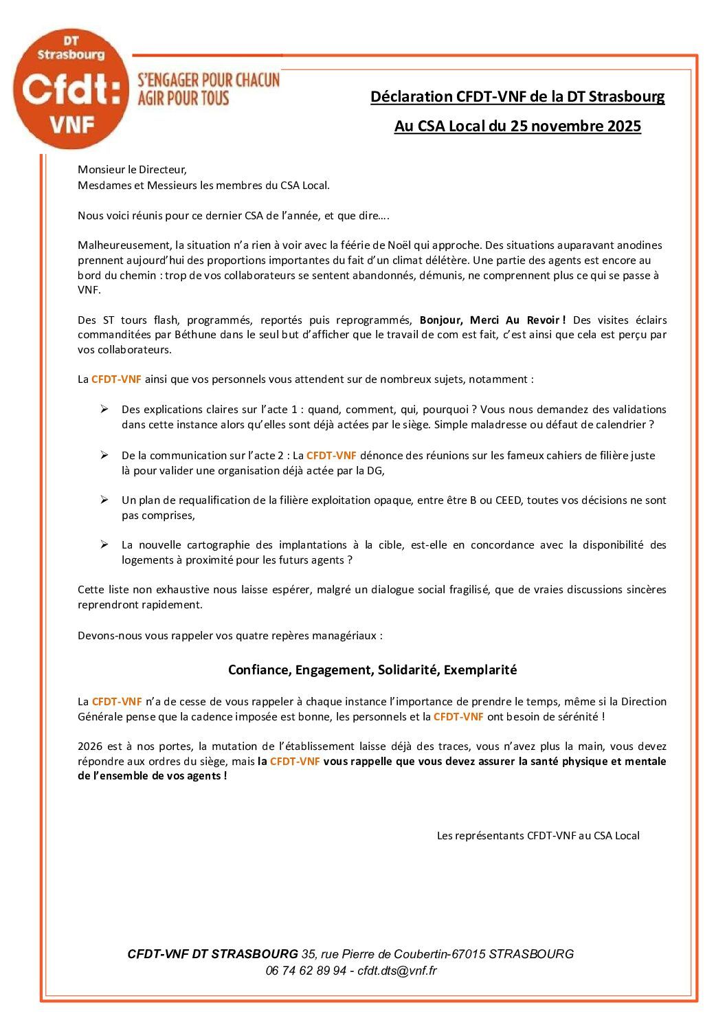 Déclaration préalable au CSAL du 25 novembre 2025