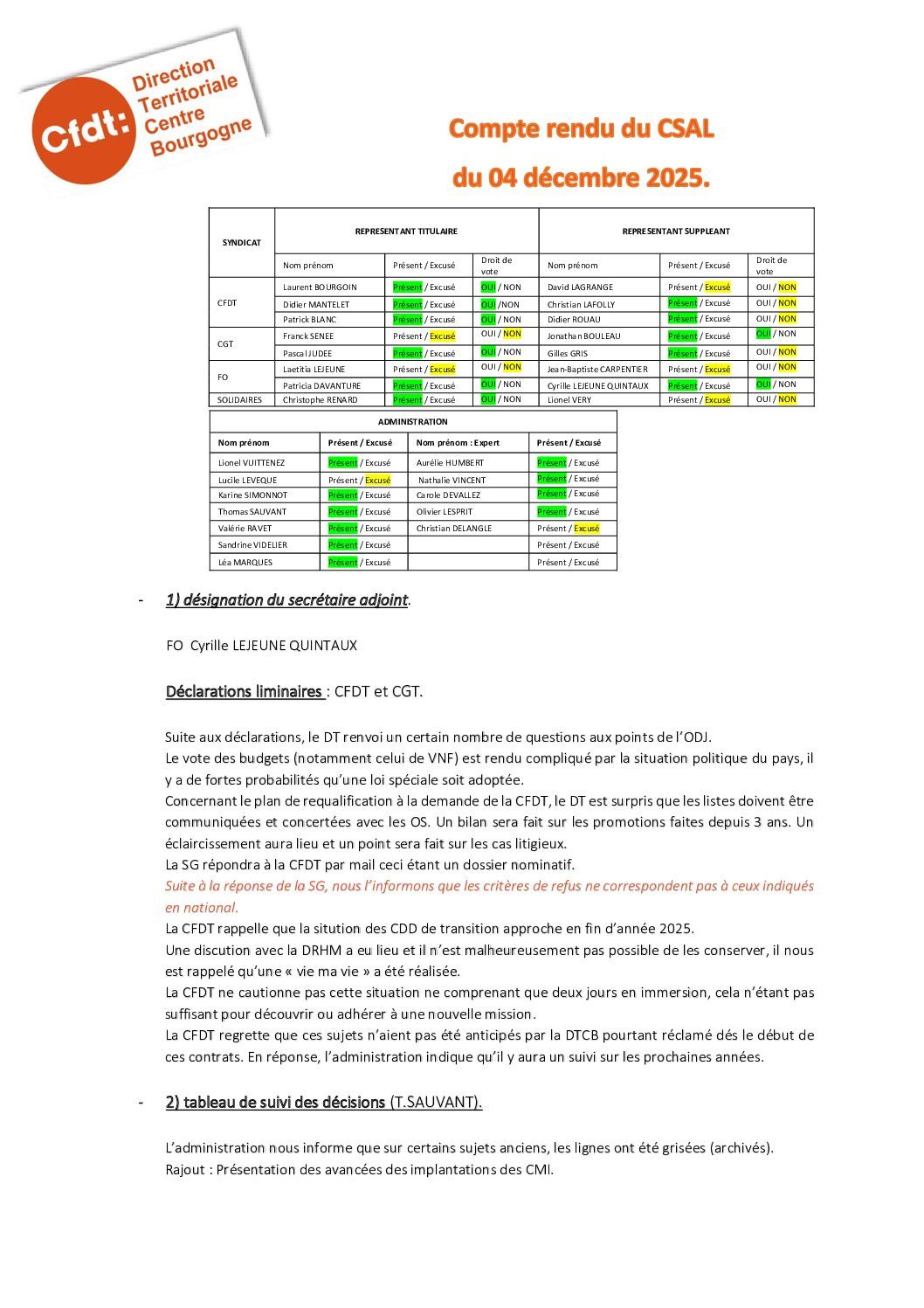 Compte-rendu du CSAL du 4 décembre 2025