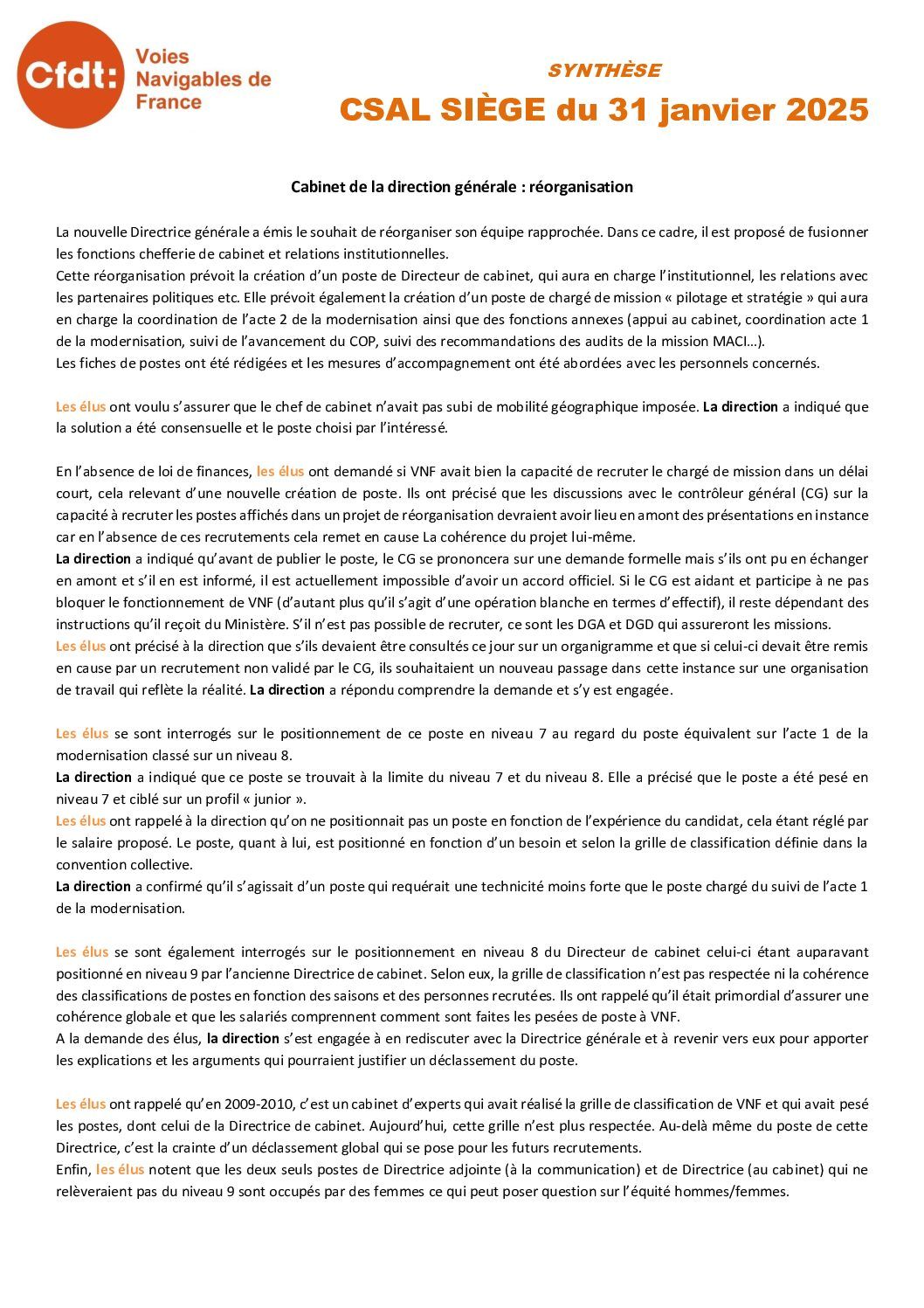 Synthèse du CSAL du 31 janvier 2025