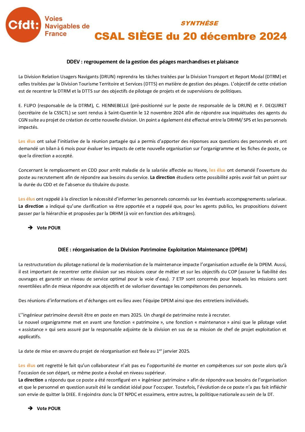 Synthèse du CSAL du 24 mars 2025