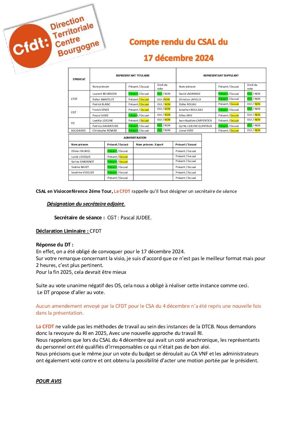 Compte-rendu du CSAL du 17 décembre 2024