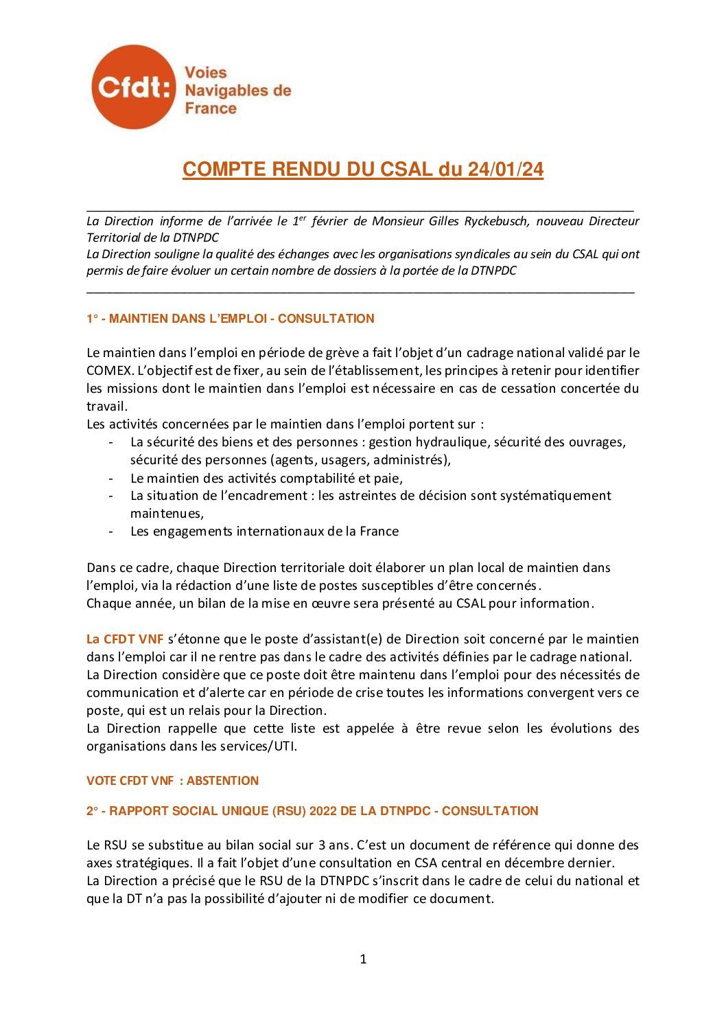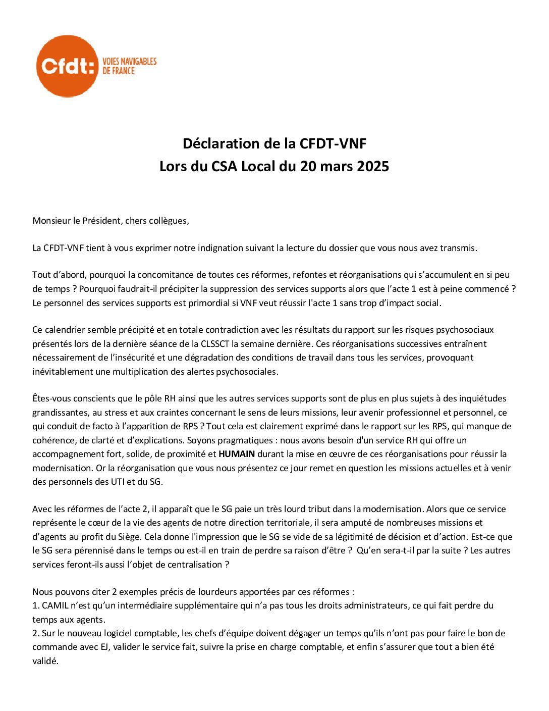 Déclaration préalable au CSAL du 20 mars 2025