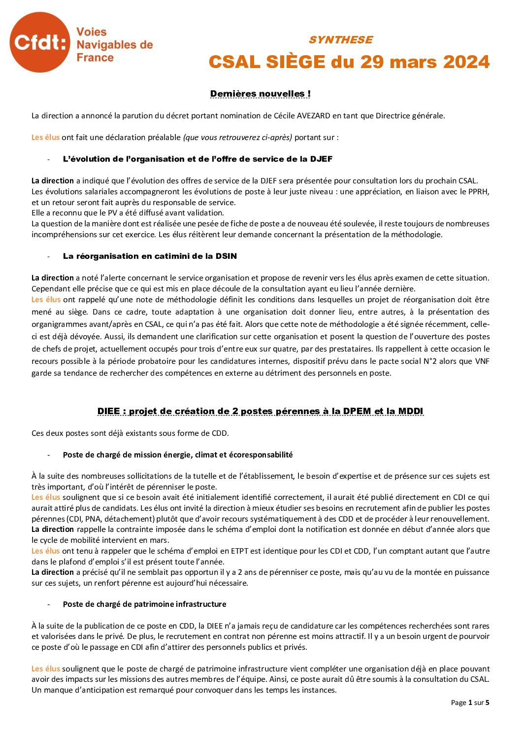 Synthèse de la CSAL du 29 mars 2024