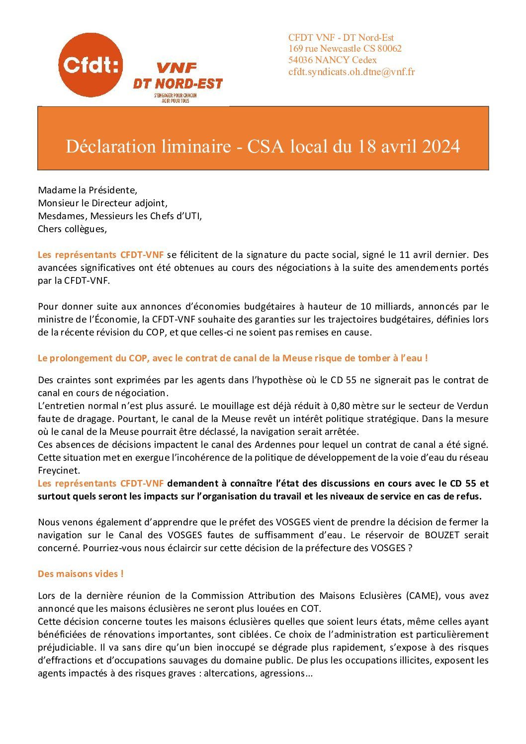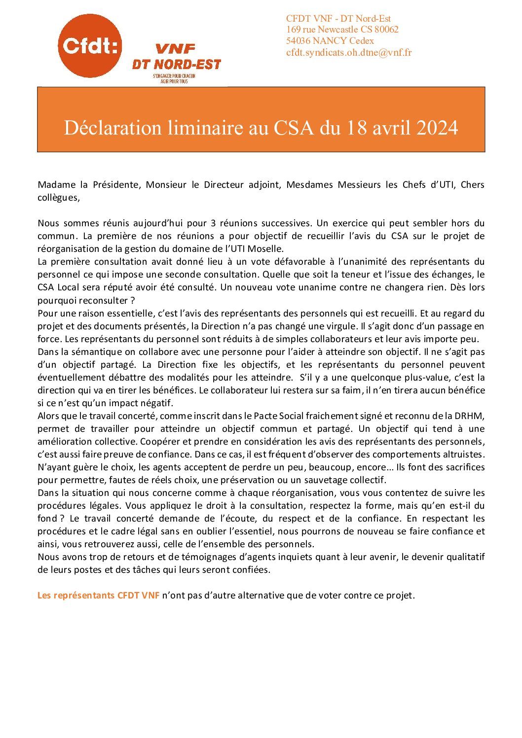 Déclaration préalable 1er CSAL 18 avril 2024