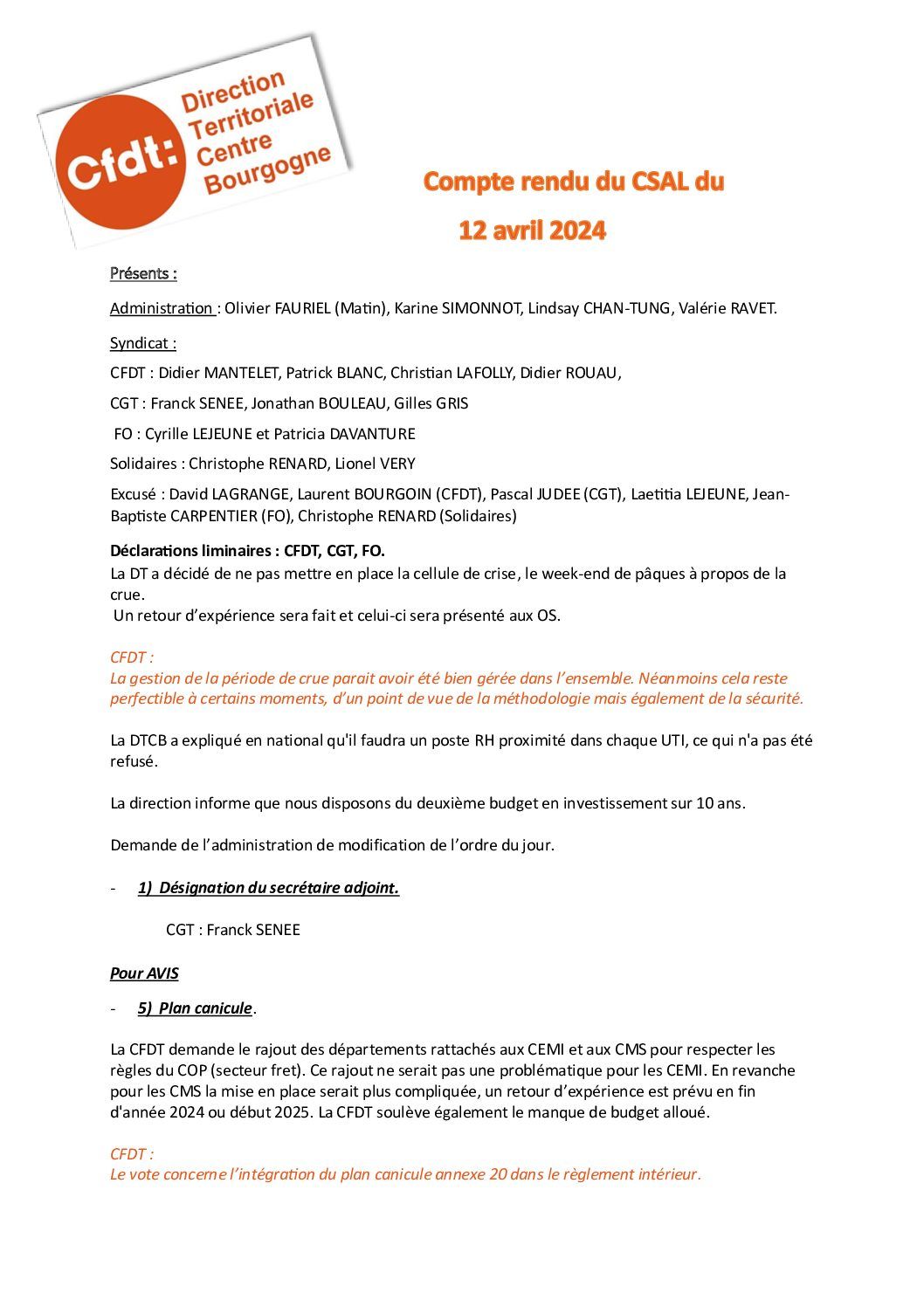 Compte-rendu CSAL du 12 avril 2024