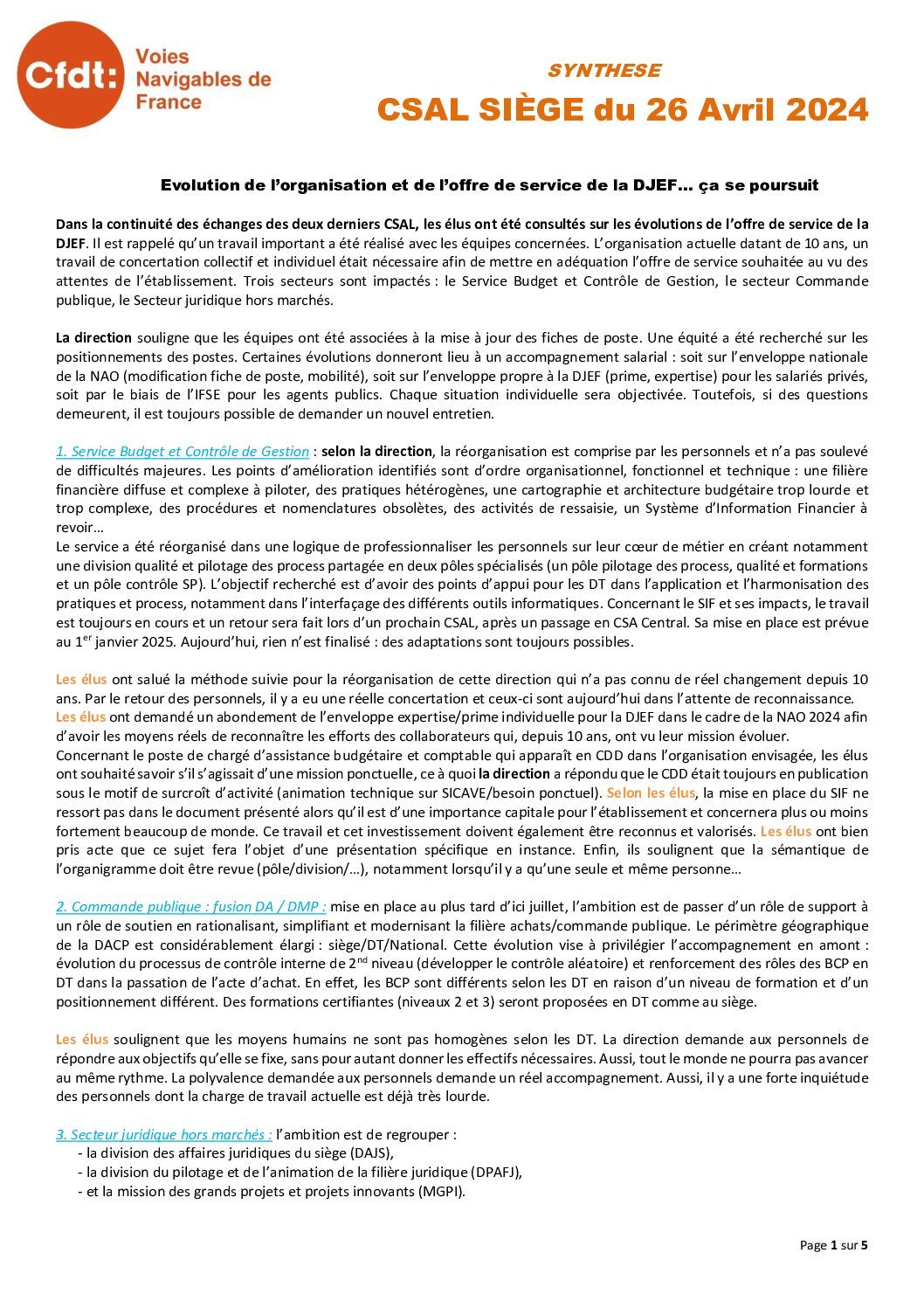 Synthèse de la CSAL du 26 avril 2024