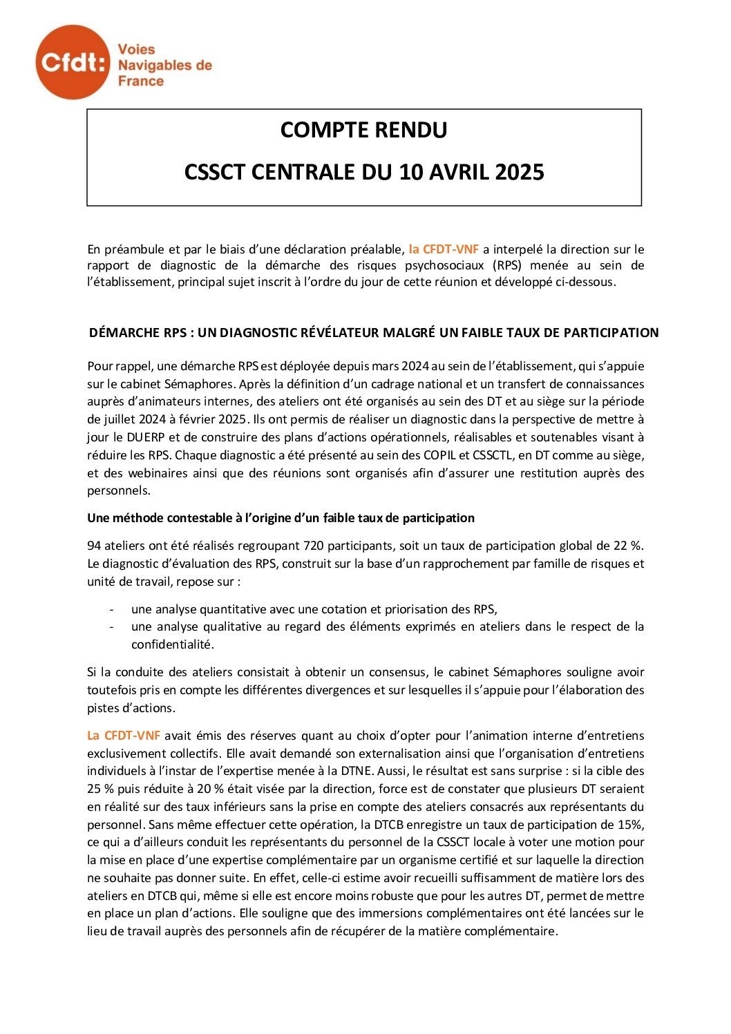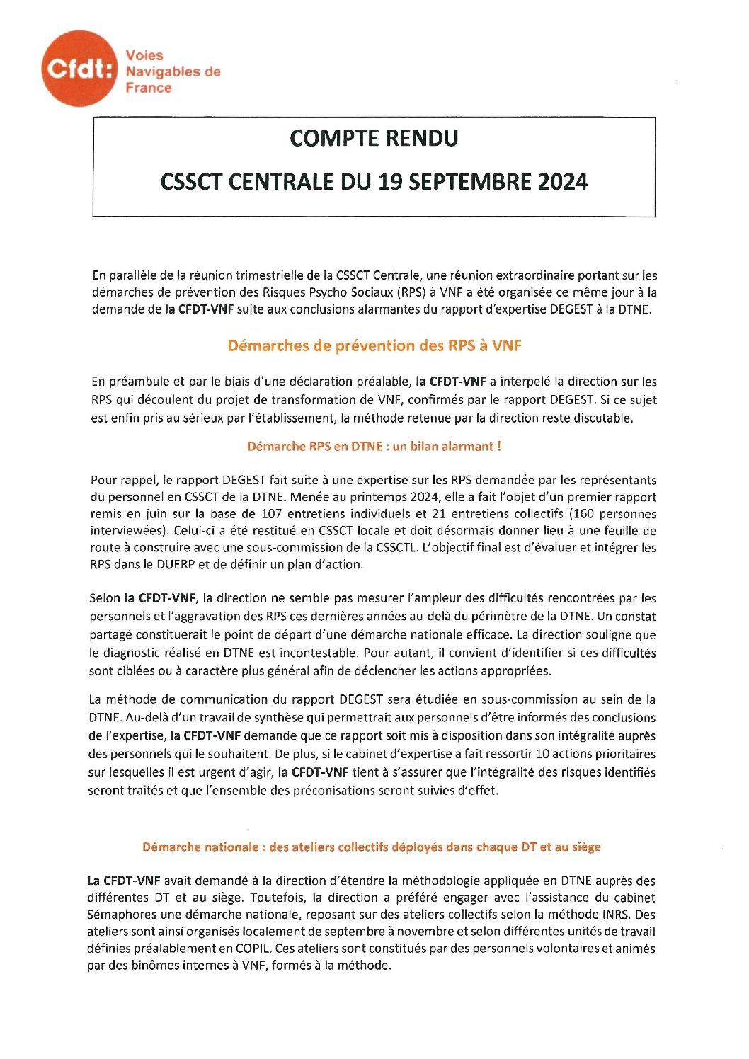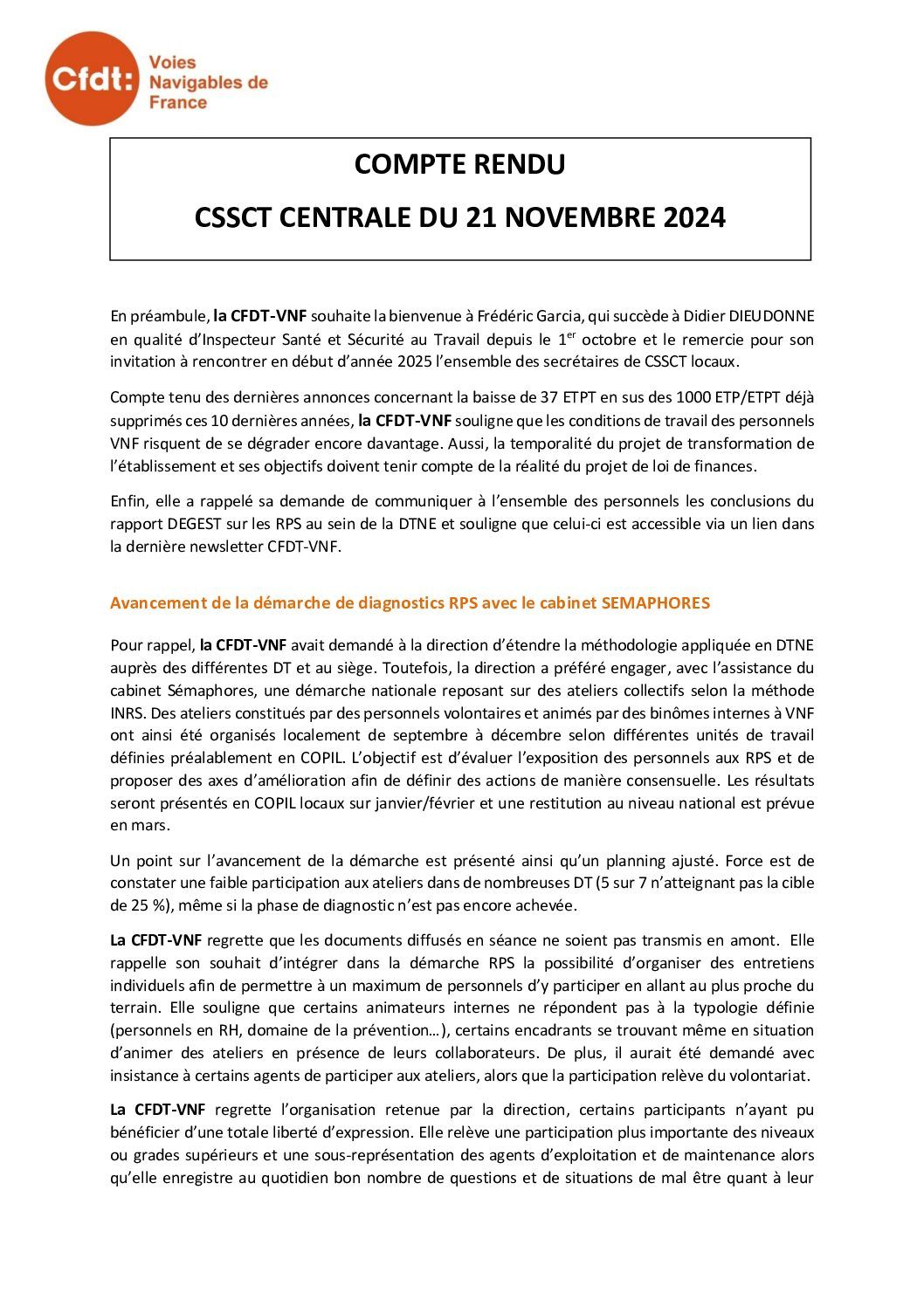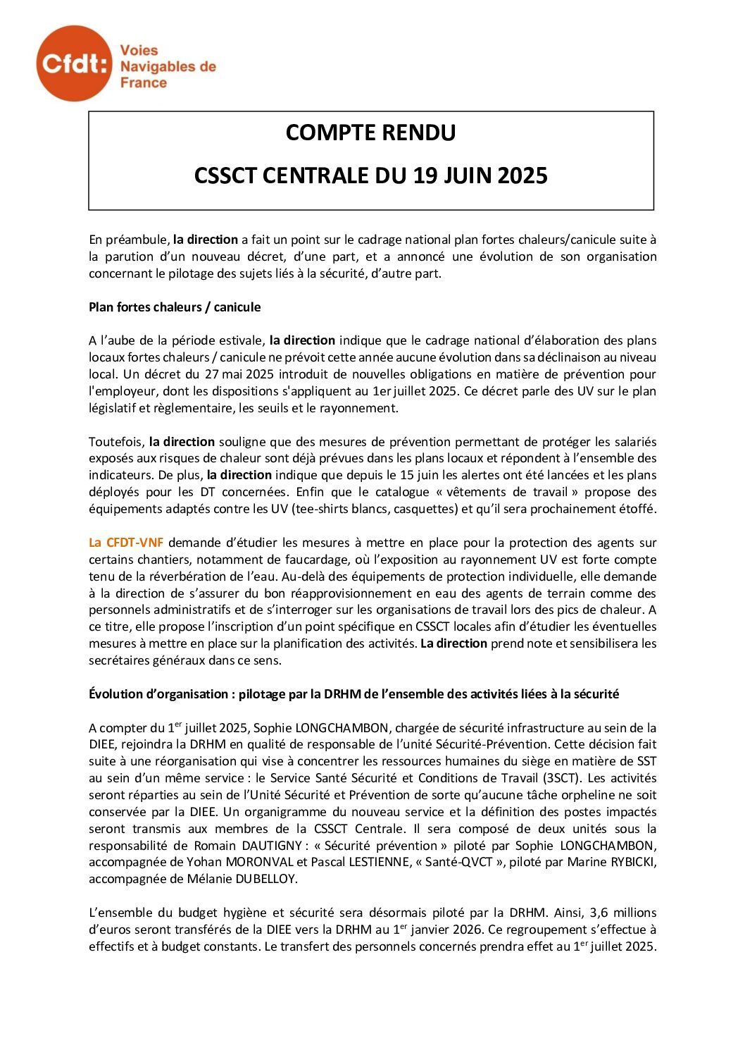 Compte rendu de la CSSCT Centrale du 20 décembre 2025