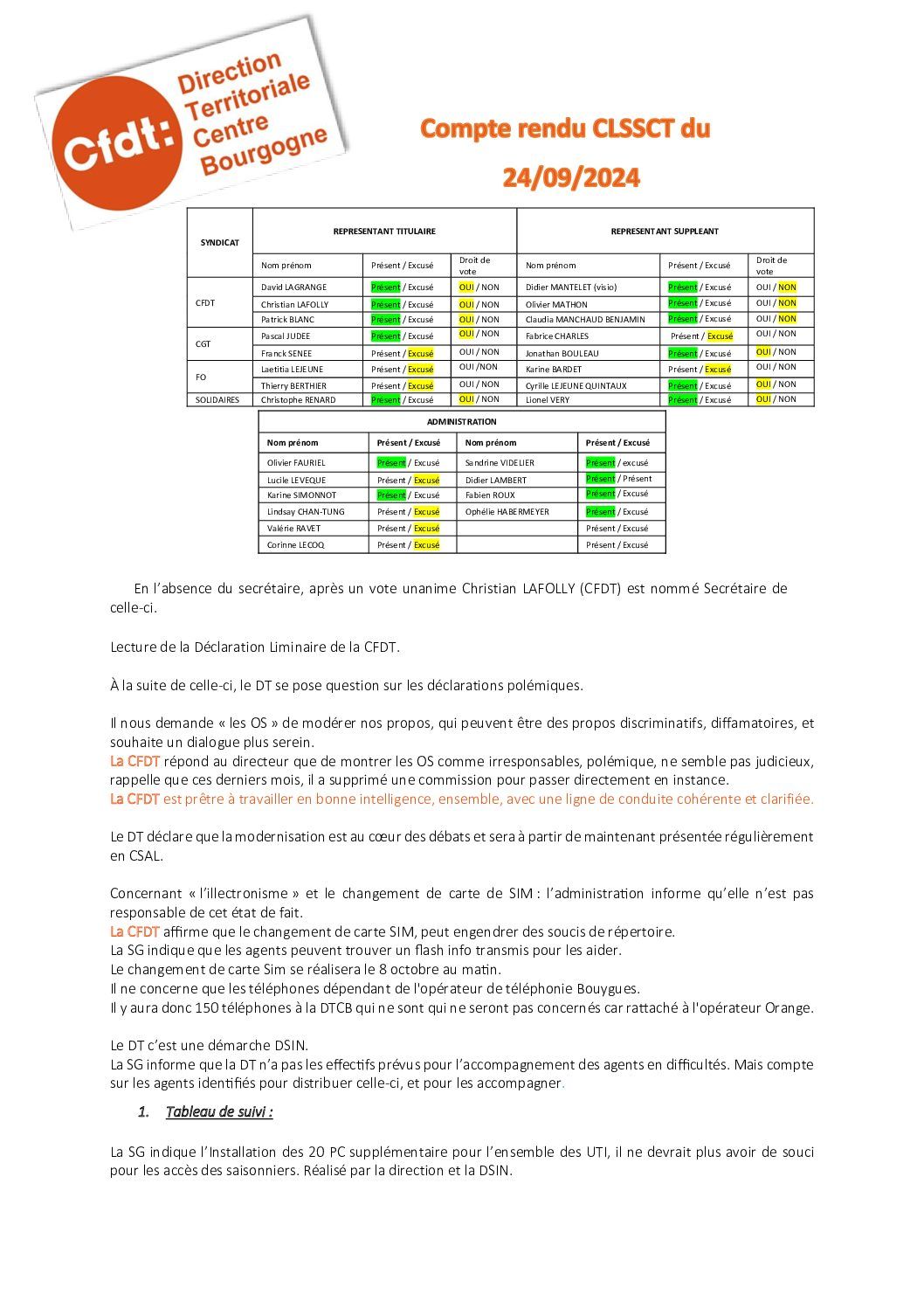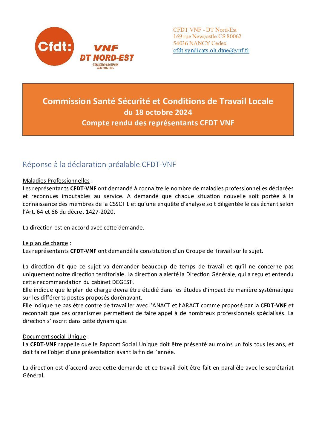 Compte-rendu de la CSSCT du 18 octobre 2024